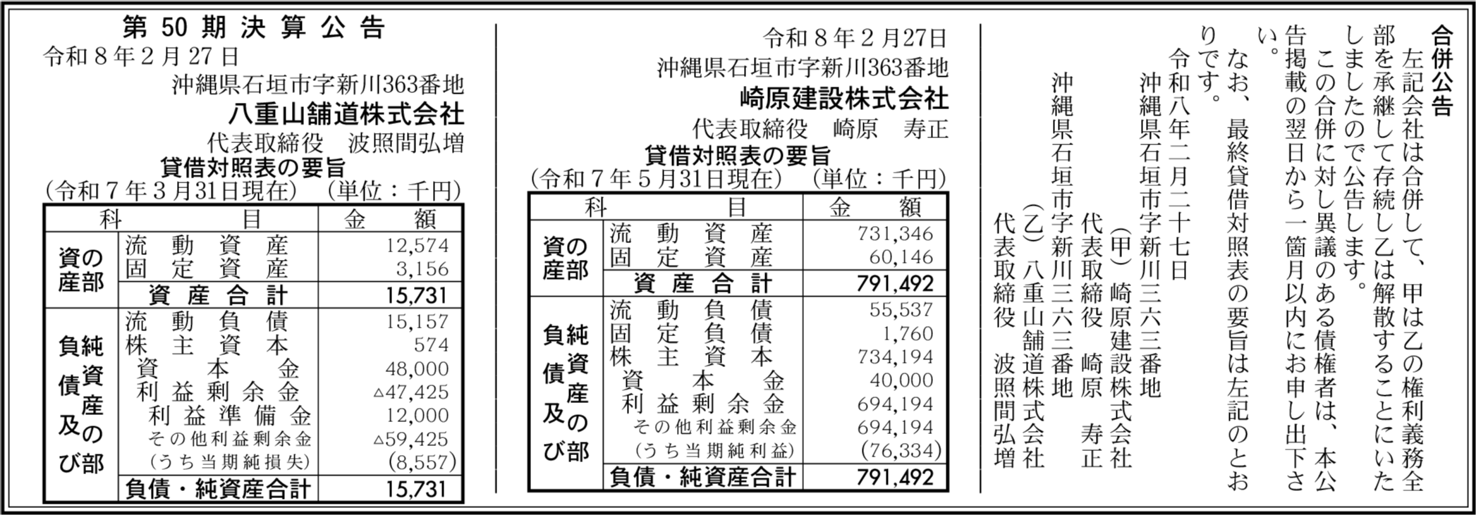 崎原建設株式会社 沖縄県石垣市 【2025年5月期】 |