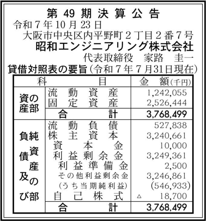 | 会社名 | 昭和エンジニアリング株式会社 |