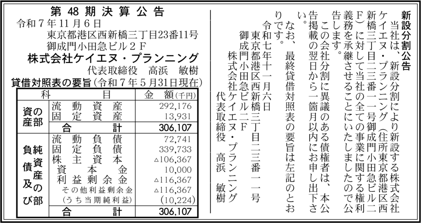 株式会社ニューピース 東京都港区 【2025年3月期】 |