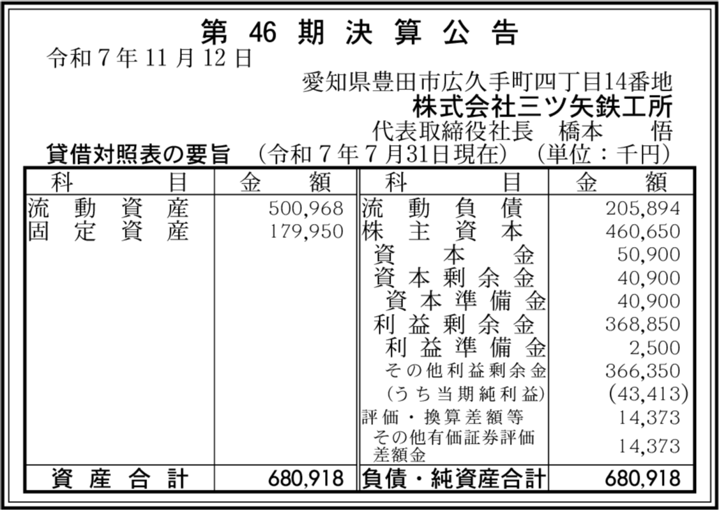 | 会社名 | 株式会社三ツ矢鉄工所 |