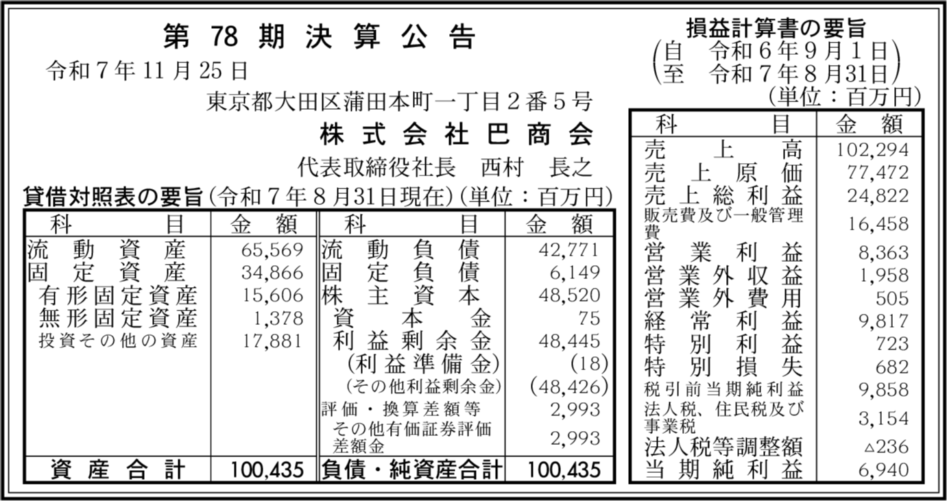 トモエホールディングス株式会社 東京都大田区 【2021年8月期】 |