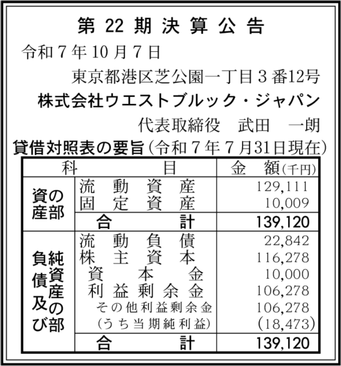 会社名 | 株式会社ウエストブルック・ジャパン |