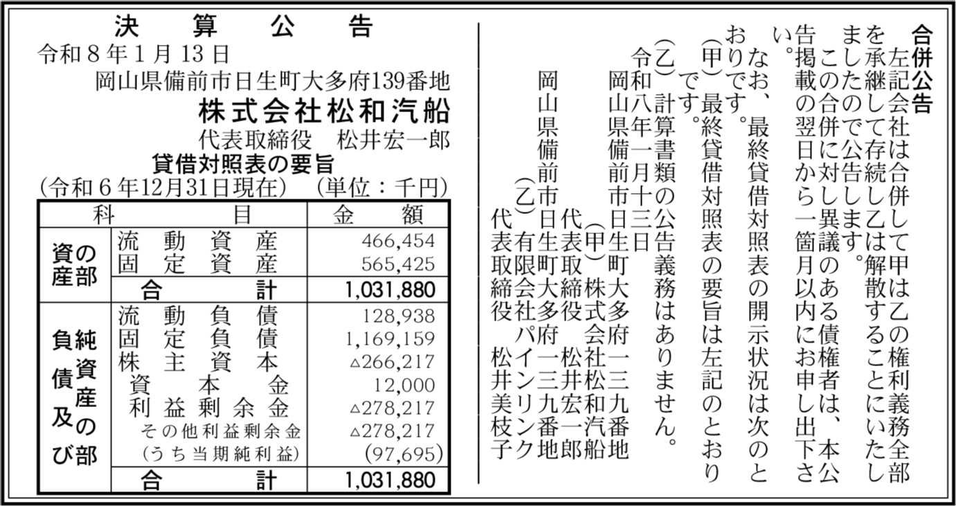 昇星汽船株式会社閉鎖済み 岡山県備前市 【2024年7月期】 |