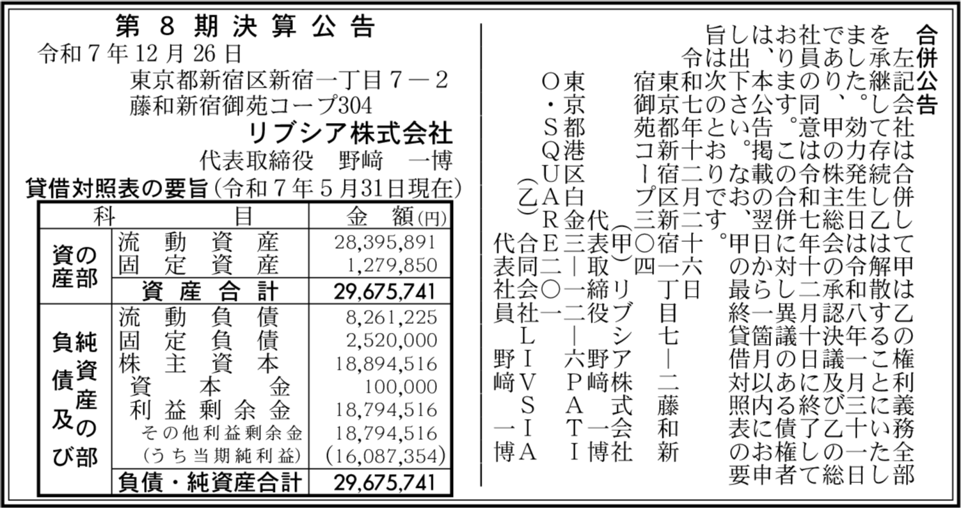| 会社名 | リブシア株式会社 |