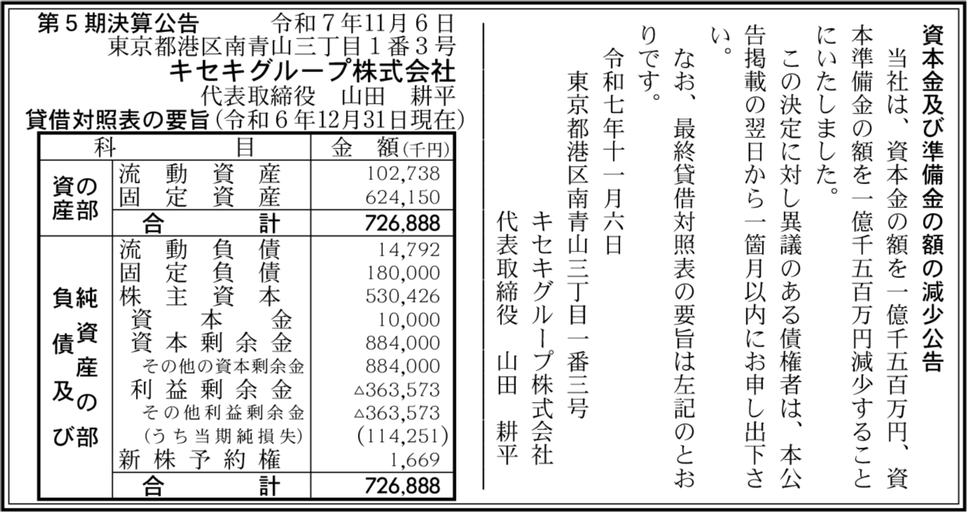 | 会社名 | キセキグループ株式会社 |