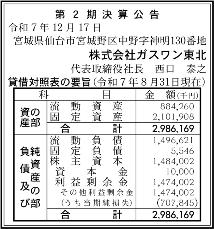仙台エルピーガス株式会社 仙台市宮城野区 【2025年6月期】 |