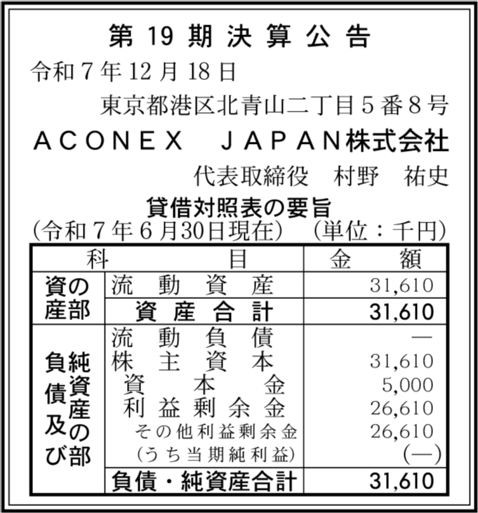 | 会社名 | ACONEX JAPAN株式会社 |