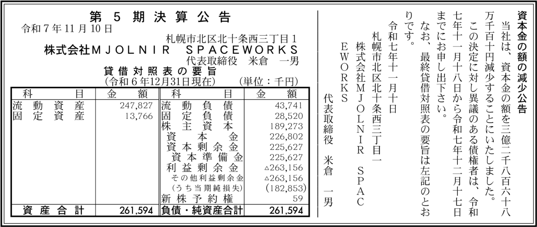 | 会社名 | 株式会社MJOLNIR SPACEWORKS |