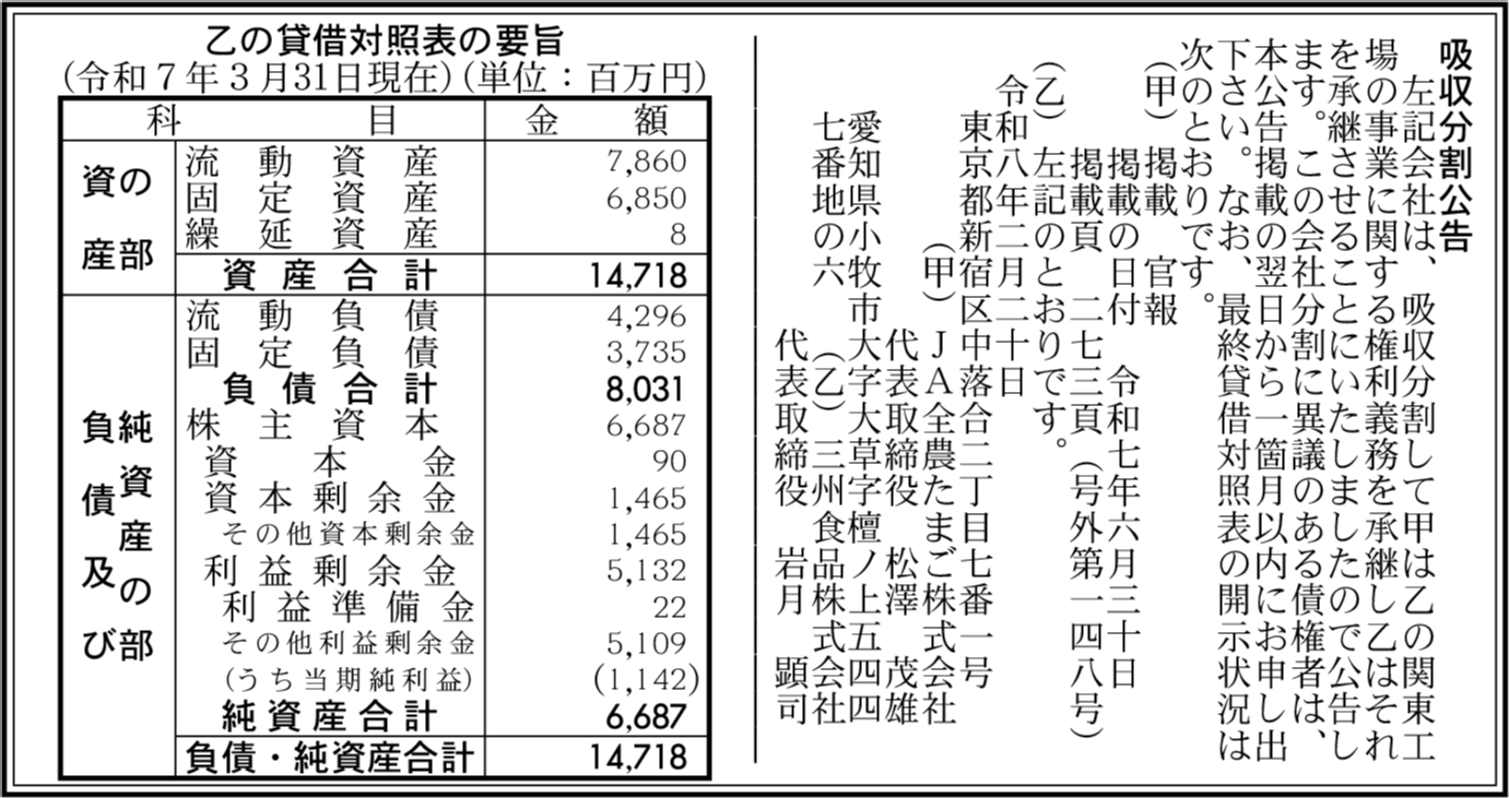 株式会社セイコー 愛知県小牧市 【2025年7月期】 |