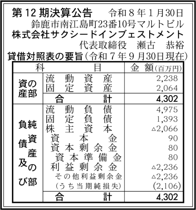 株式会社鈴鹿インベストメント 愛知県名古屋市中村区 【2025年9月期】 |