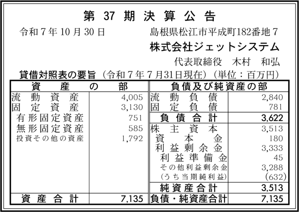 | 総資産 | 71億3,500万円 (+10.77%) |