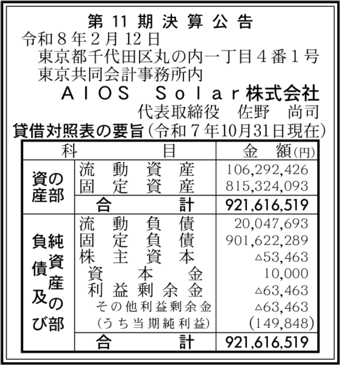 日本アセットアドバンス株式会社 東京都千代田区 【2025年10月期】 |