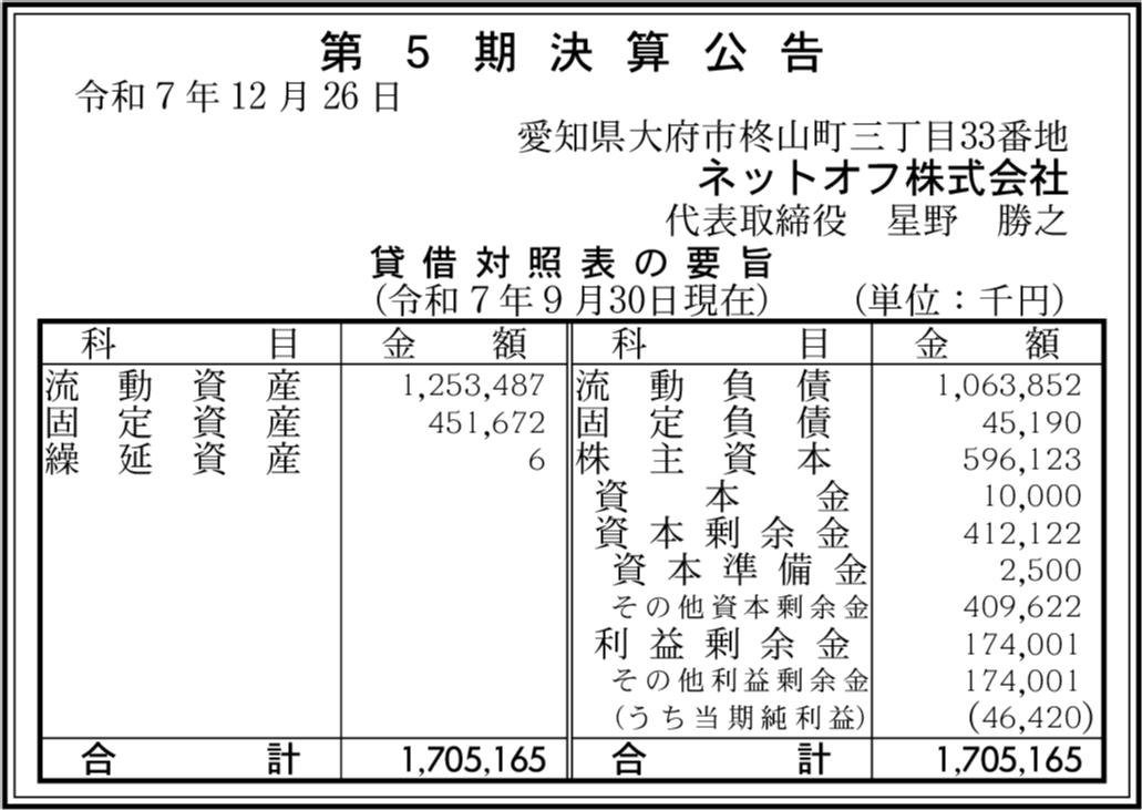 ネットオフ・ソーシャル株式会社 愛知県大府市 【2025年9月期】 |