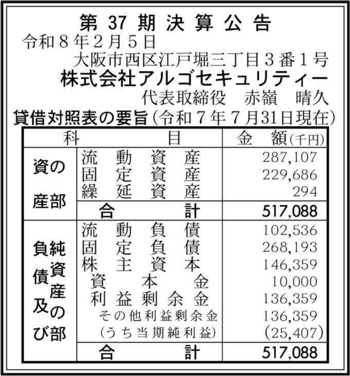 | 会社名 | 株式会社アルゴセキュリティー |