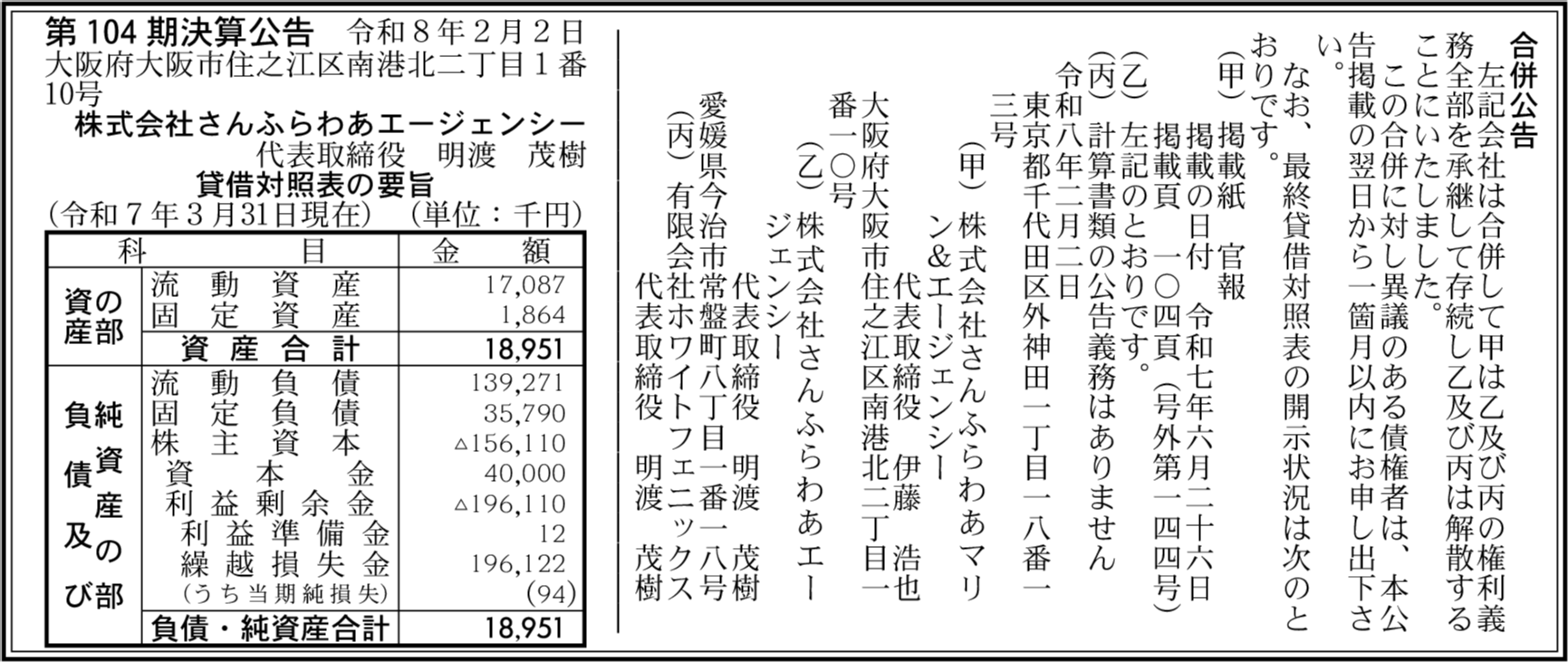 | 会社名 | 株式会社さんふらわあエージェンシー |