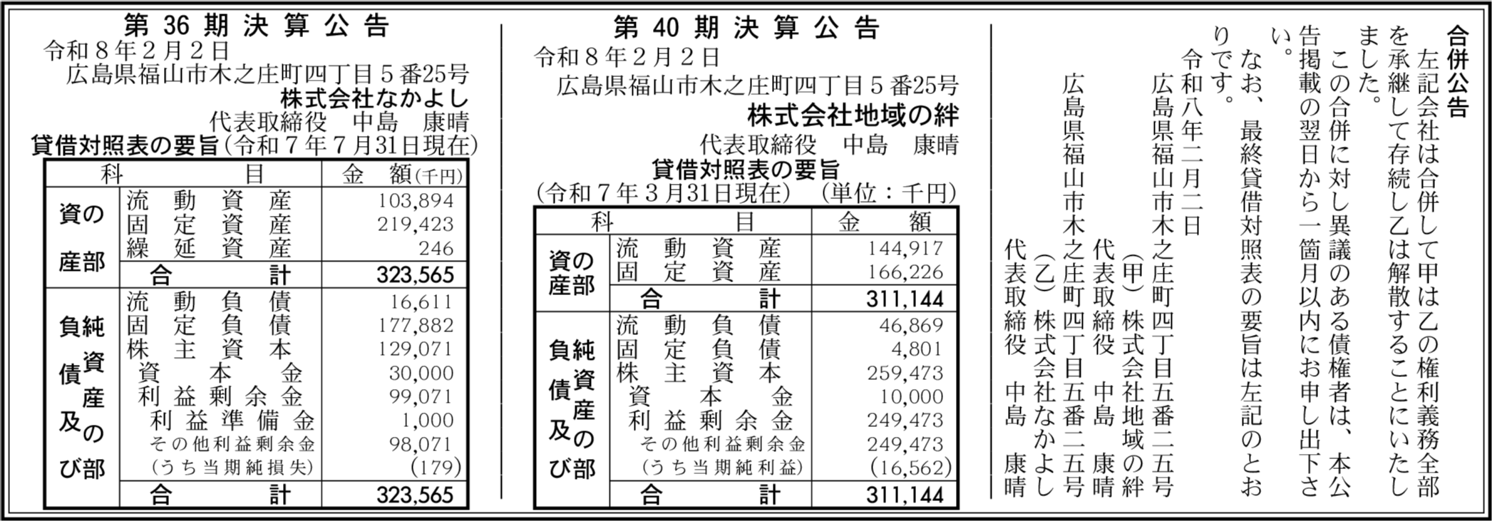 株式会社地域の絆 広島県福山市 【2025年3月期】 |