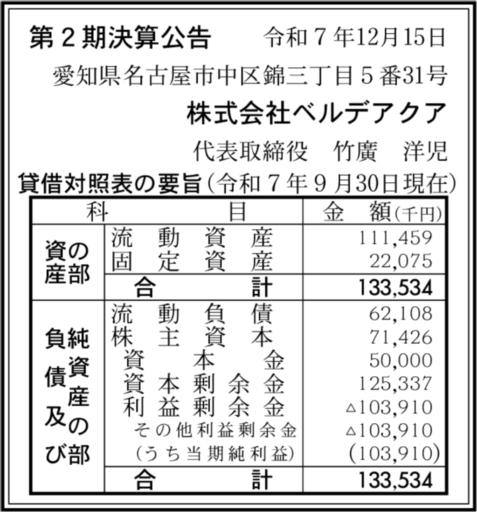 元気創健株式会社 名古屋市中区 【2025年7月期】 |