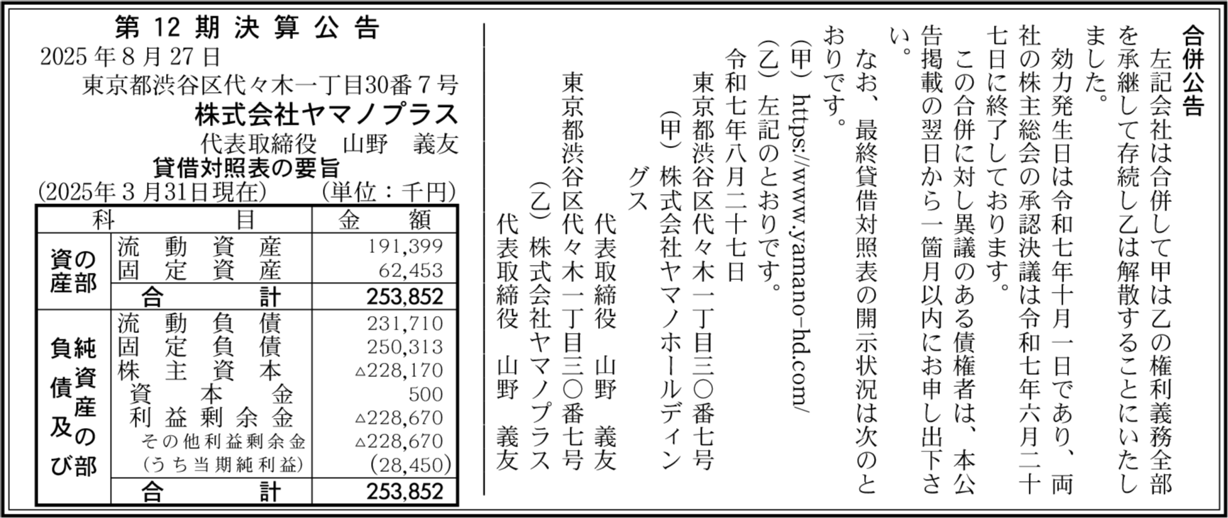 株式会社ヤマノセイビング 東京都渋谷区 【2025年3月期】 |