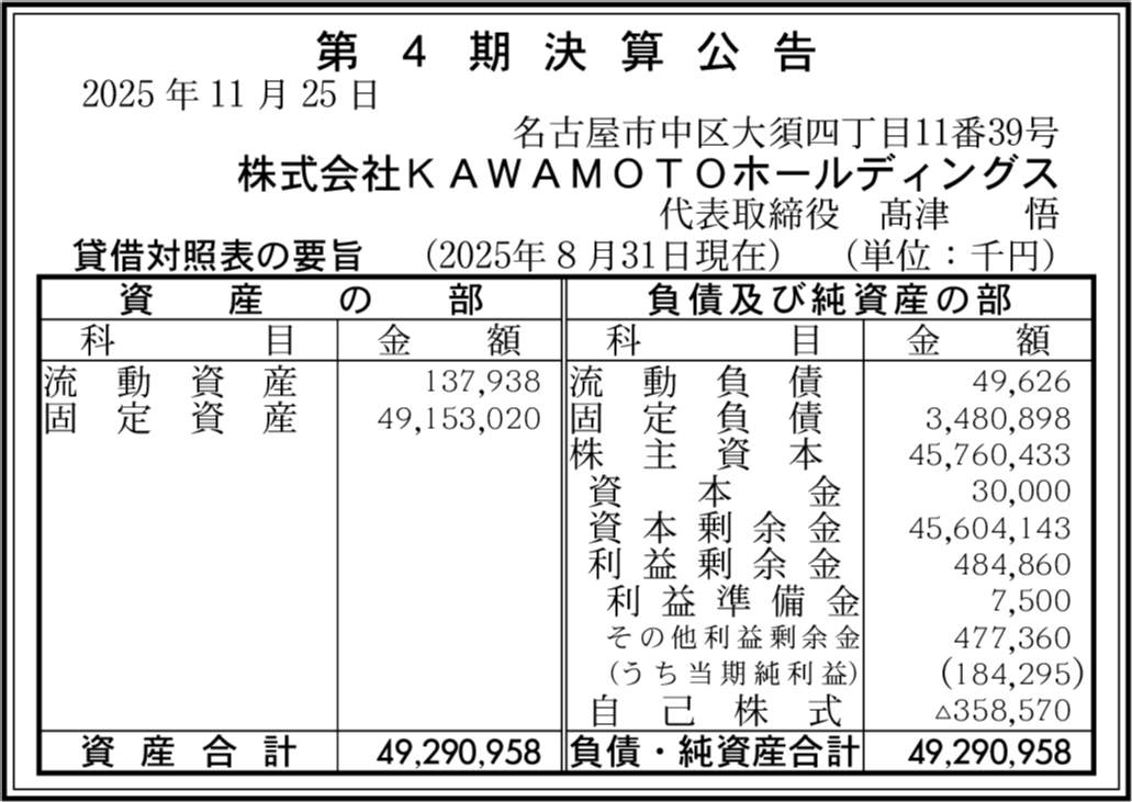 | 会社名 | 株式会社KAWAMOTOホールディングス |