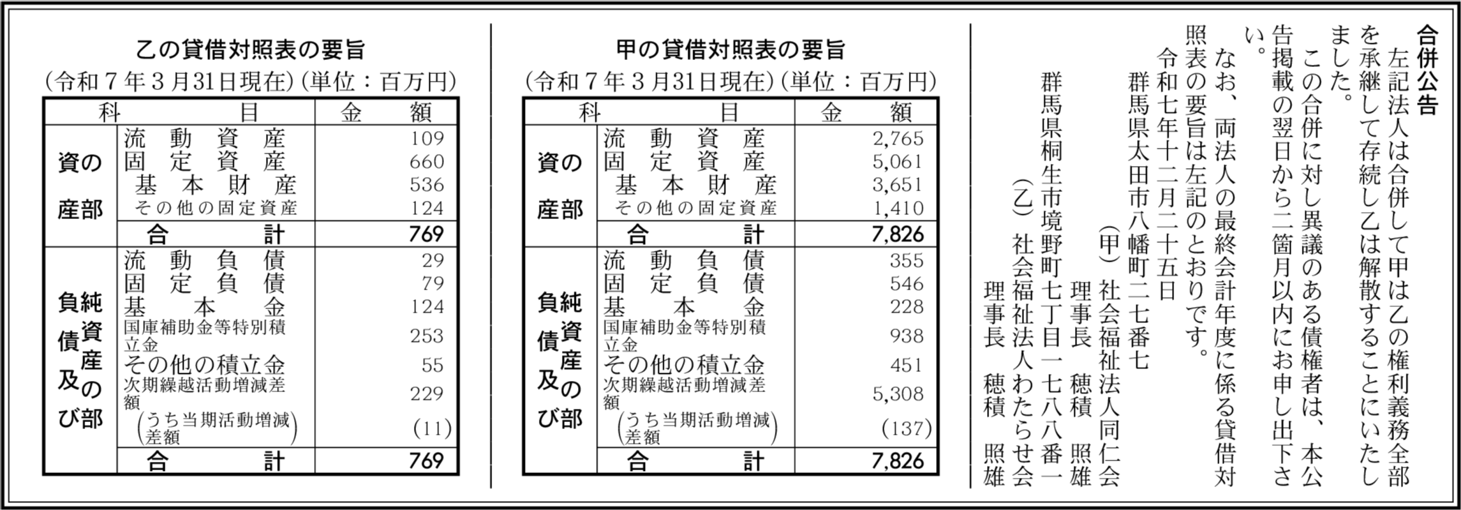 社会福祉法人わたらせ会 群馬県桐生市 【2025年3月期】 |
