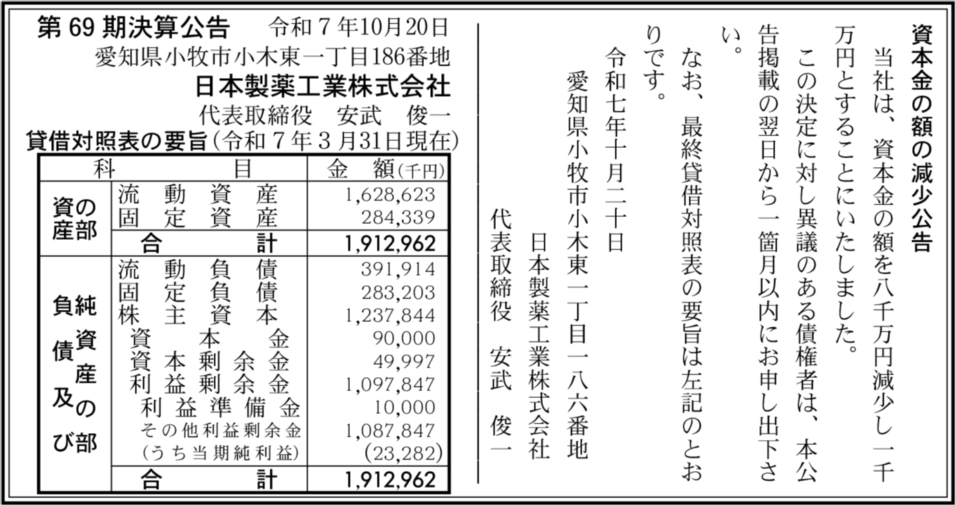 日産東海テクノ株式会社 愛知県小牧市 【2025年3月期】 |