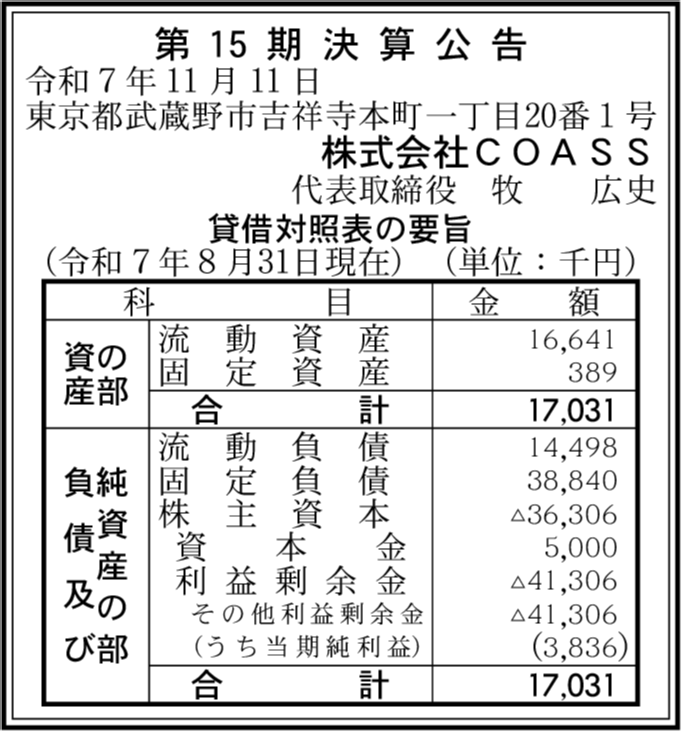 株式会社アベカンパニー 東京都武蔵野市 【2024年11月期】 |