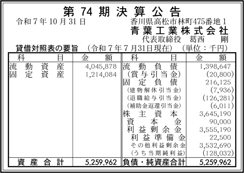 | 会社名 | 青葉工業株式会社 |