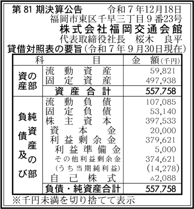 | 利益剰余金 | 3億7,962万1,000円 (+1.23%) |