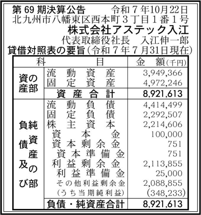 | 株式会社アドバンテスト九州システムズ 北九州市八幡東区 【2025年3月期】 | 3,915万4,000円 (▲23.51%) | 4億8,821万4,000円 (+8.72%) | 9億8,273万3,000円 (▲10.3%) |