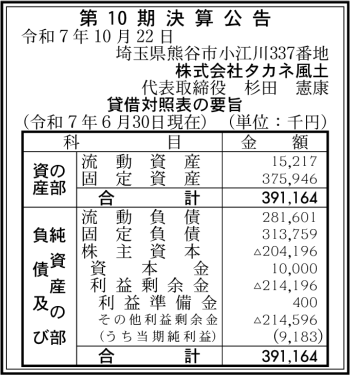| 会社名 | 株式会社タカネ風土 |