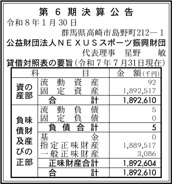 | 会社名 | 公益財団法人NEXUSスポーツ振興財団 |