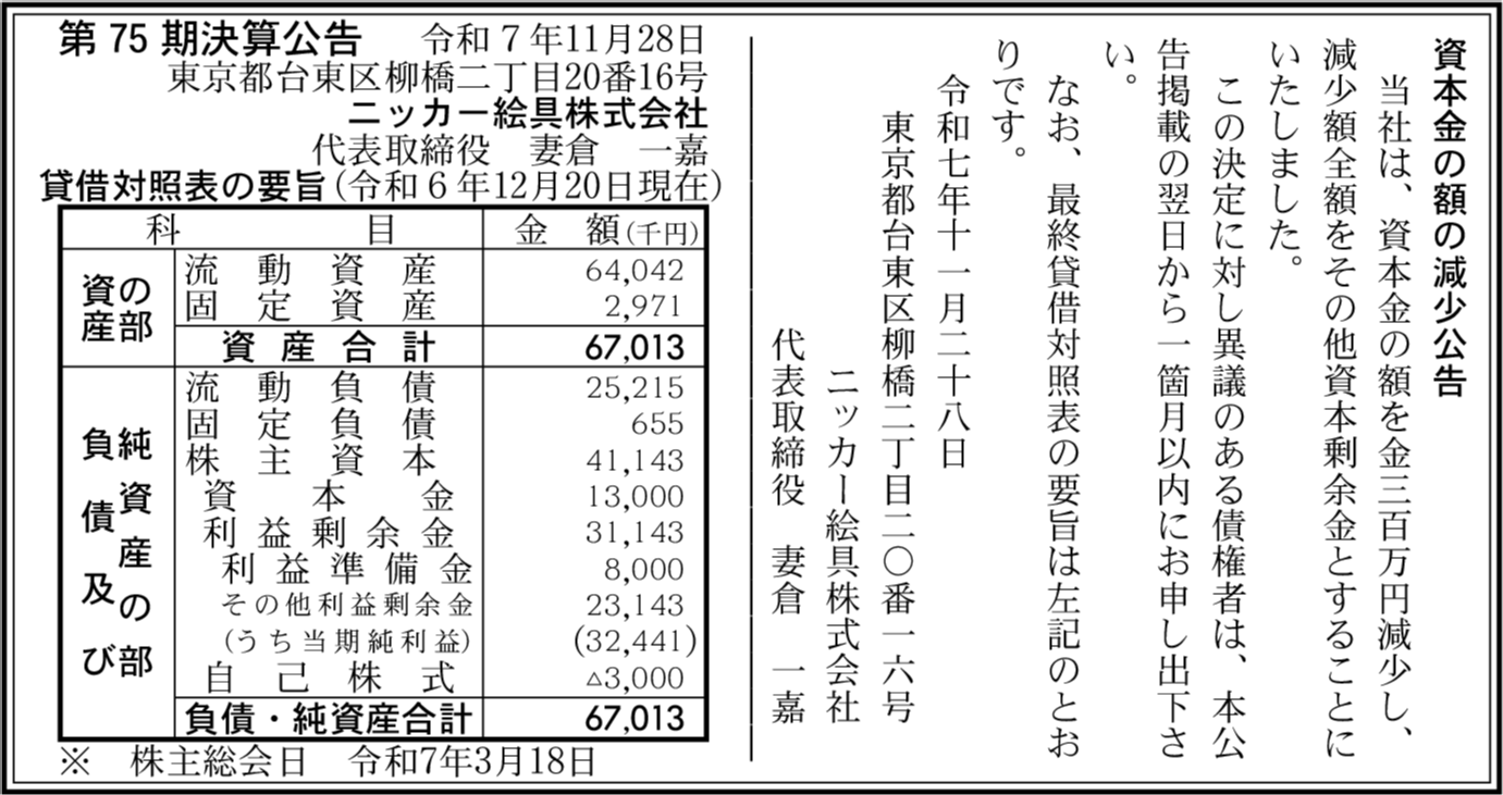新日本造形株式会社 東京都台東区 【2024年12月期】 |