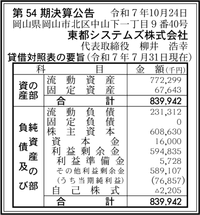 東都システムズ株式会社 岡山県岡山市北区 |
