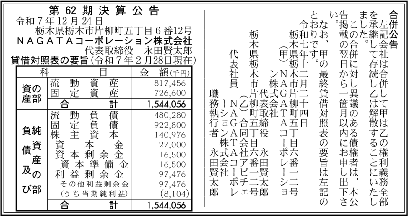 | 会社名 | NAGATAコーポレーション株式会社 |