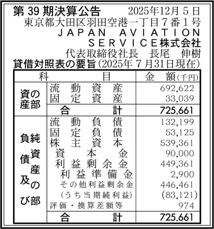 | 会社名 | JAPAN AVIATION SERVICE株式会社 |