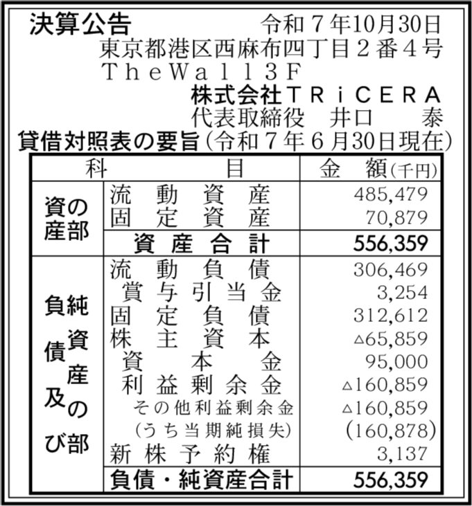 | 株式会社ホワイトリリー 東京都港区 【2025年6月期】 | △1,498万9,715円 (赤字拡大) | 9,793万1,832円 (▲13.27%) | 2億6,288万1,629円 (+0.07%) |