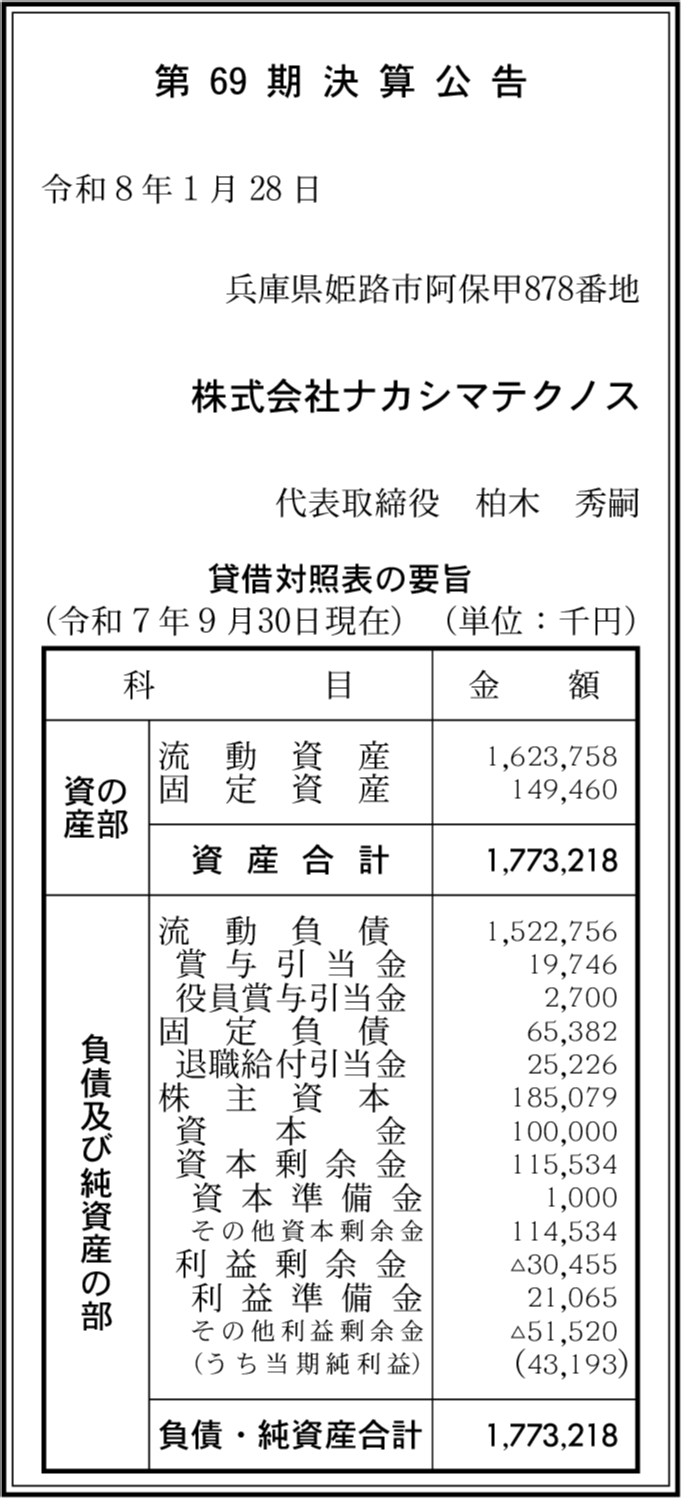 株式会社ナカシマ 兵庫県姫路市 【2025年9月期】 |