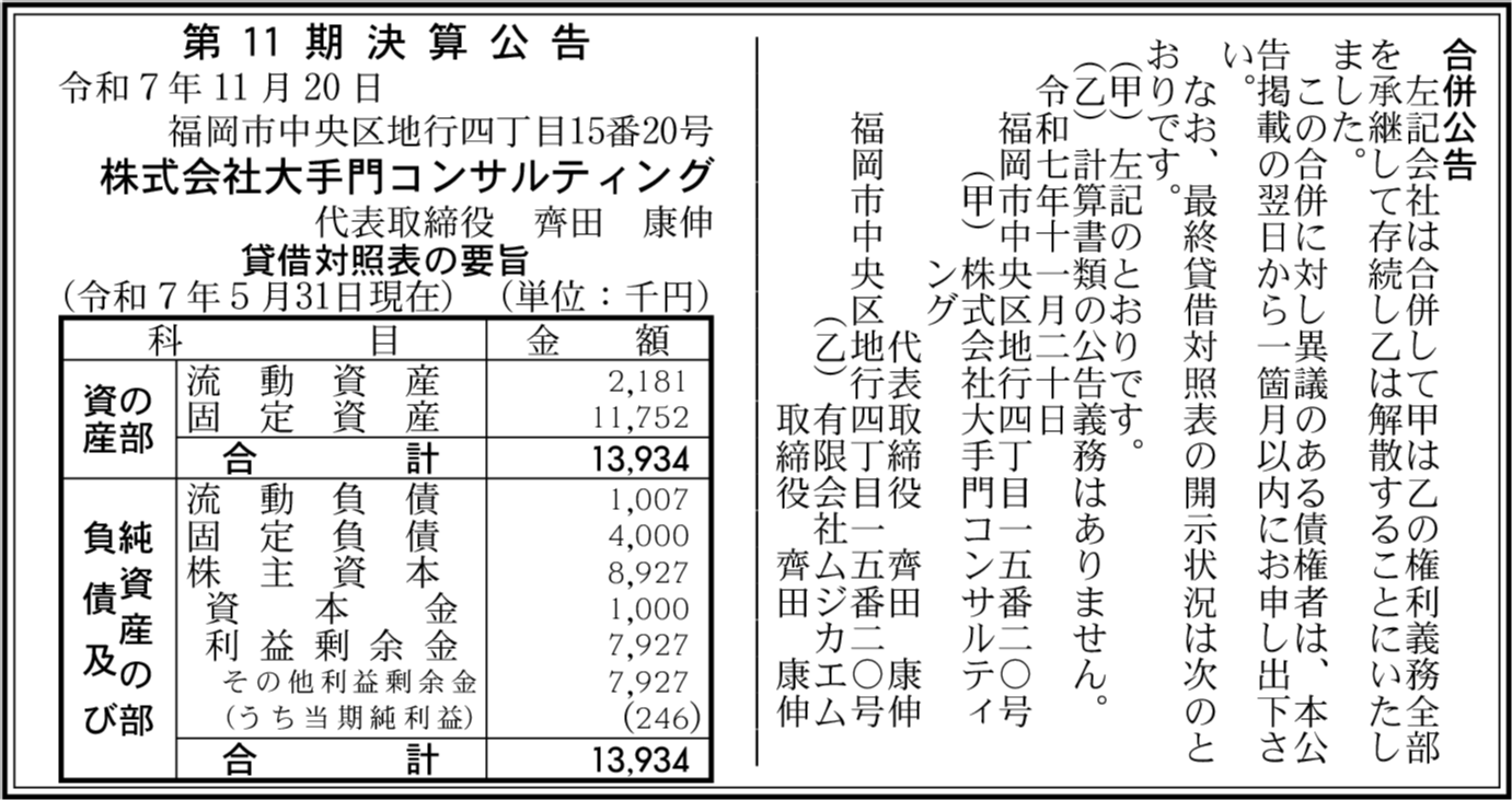 | 会社名 | 株式会社大手門コンサルティング |
