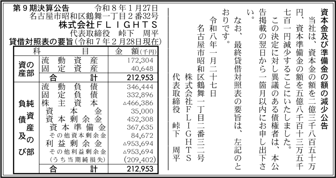 | 利益剰余金 | ▲9億5,369万4,000円 |