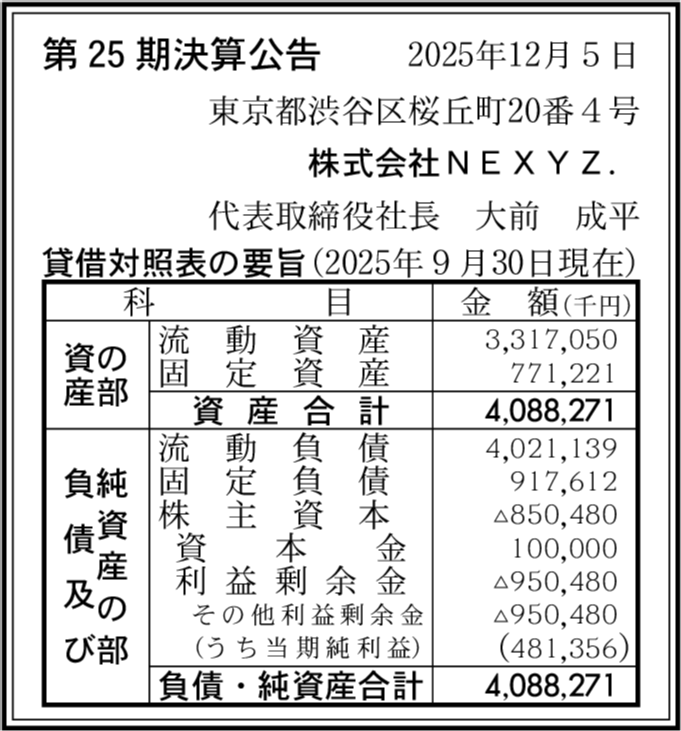 株式会社NEXYZ.東日本 東京都渋谷区 【2025年9月期】 |
