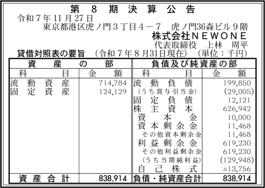 | 総資産 | 8億3,891万4,000円 (+30.27%) |