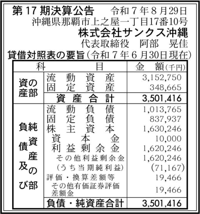 株式会社サザンクルー 沖縄県那覇市 【2025年6月期】 |