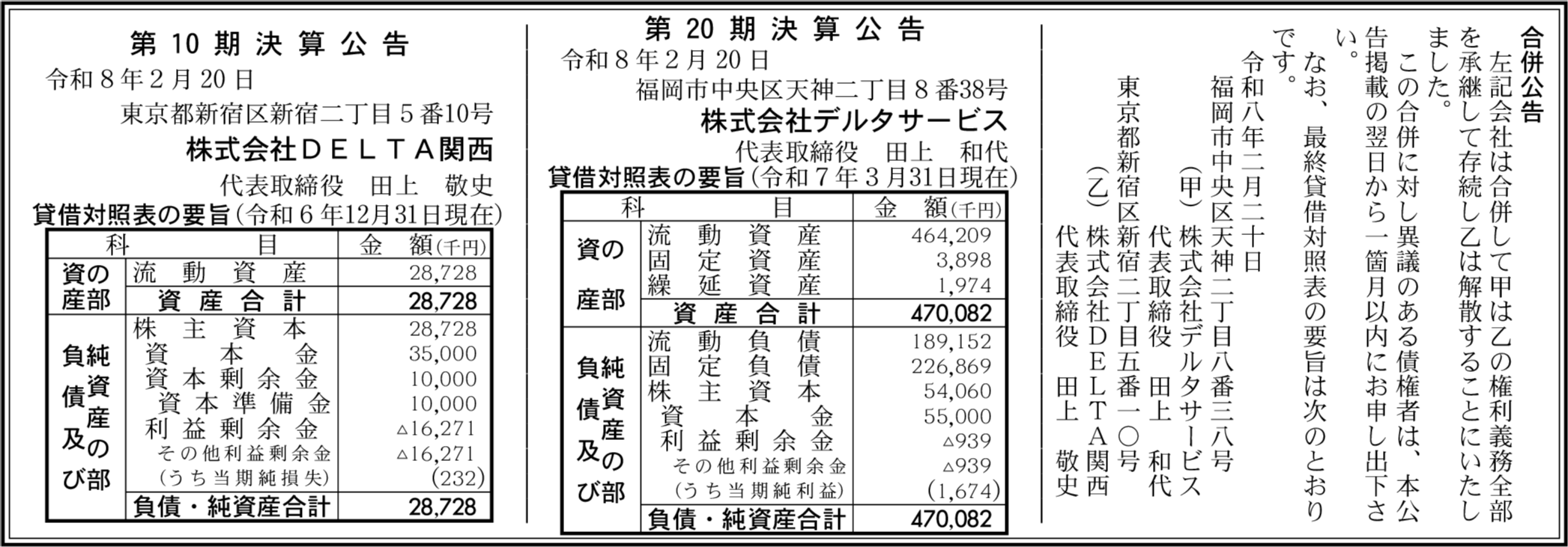 | 親会社・関連会社等 | DELTA Holdings株式会社(10) |