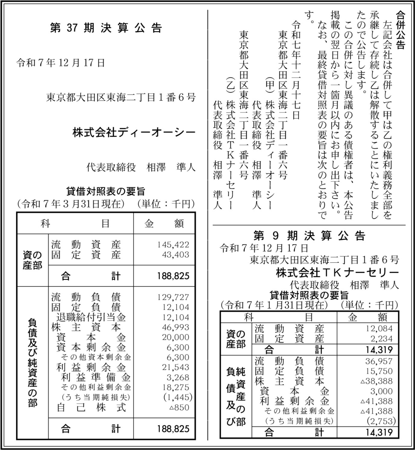 株式会社ディーオーシー 東京都大田区 【2025年3月期】 |