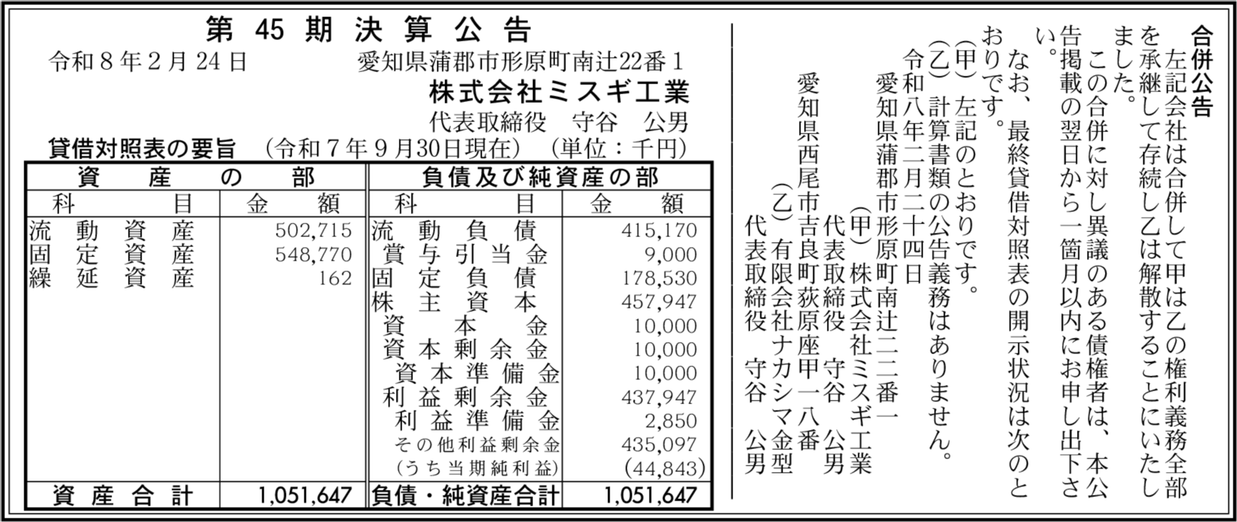 株式会社金トビ志賀 愛知県蒲郡市 【2025年9月期】 |