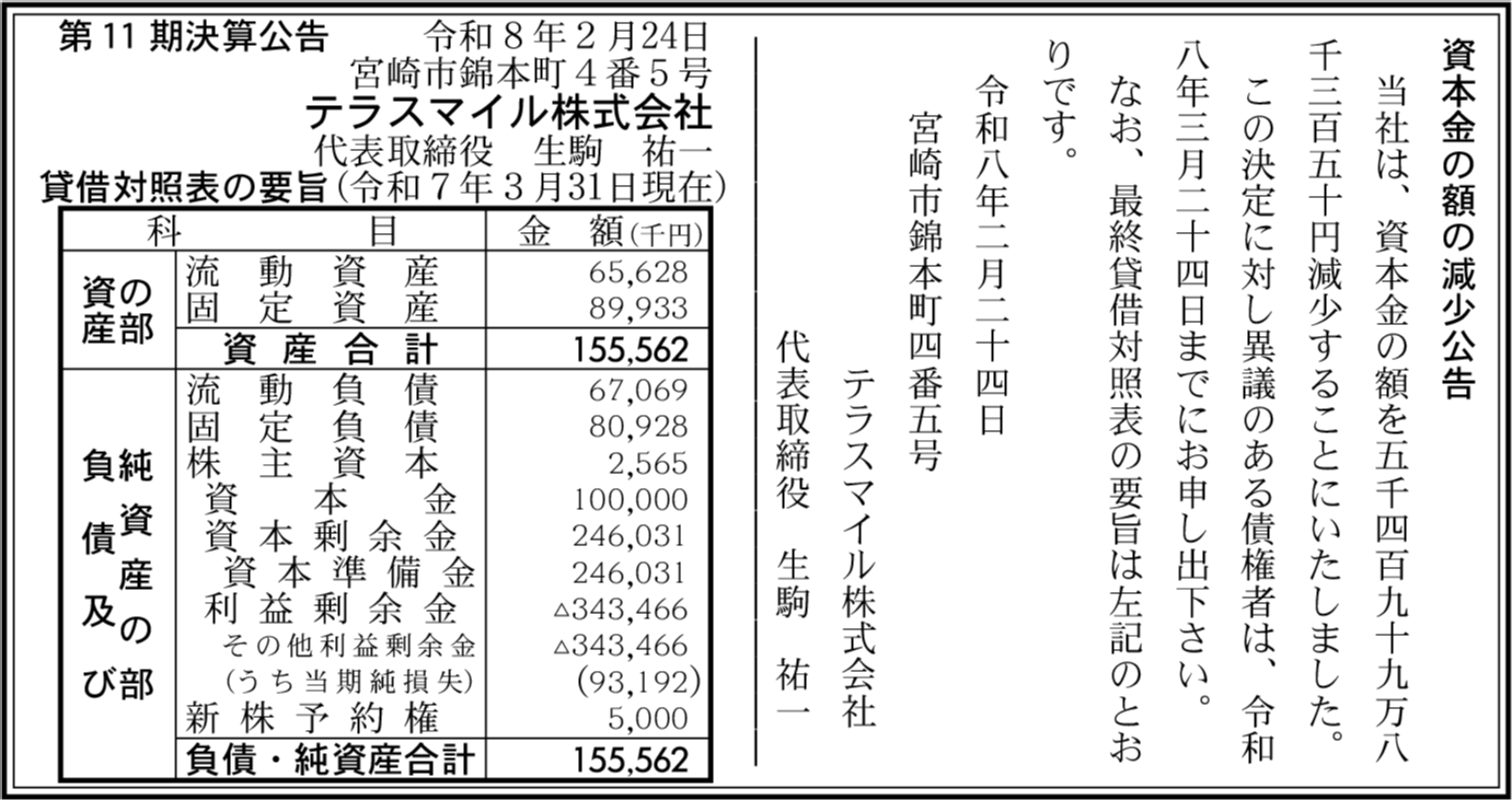 | 会社名 | テラスマイル株式会社 |
