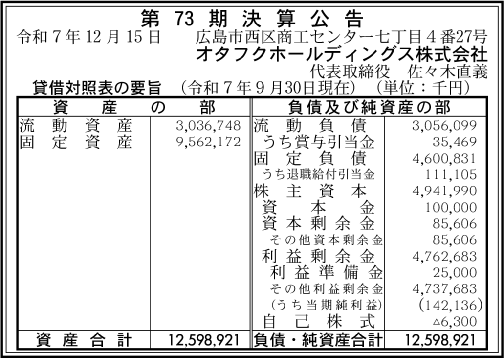 オタフクソース株式会社 広島市西区 【2025年9月期】 |