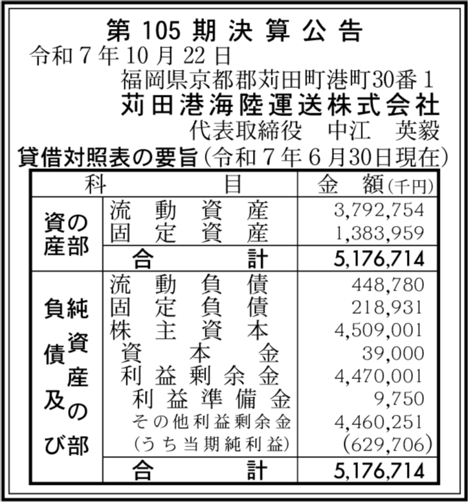 京華興産株式会社 福岡県京都郡苅田町 【2025年5月期】 |