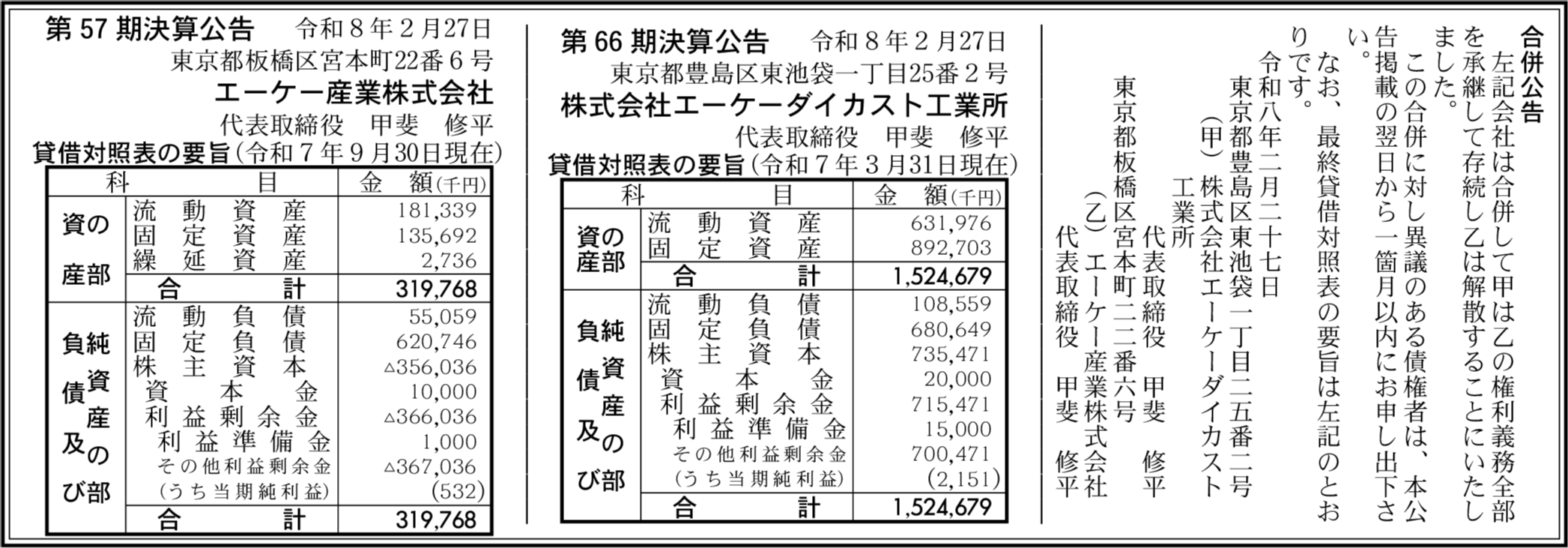 エーケー産業株式会社 東京都板橋区 【2025年9月期】 |