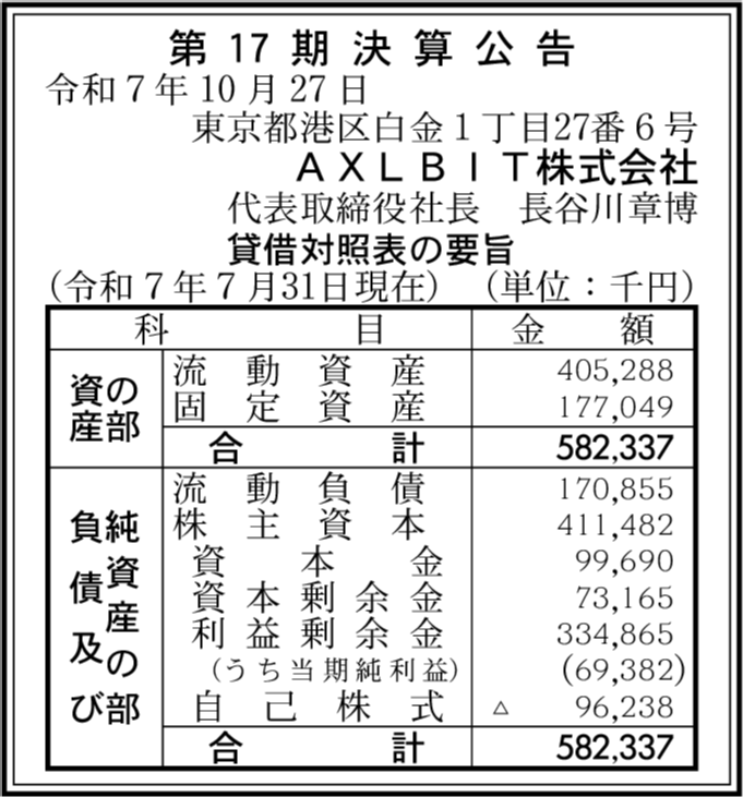 | 総資産 | 5億8,233万7,000円 (+17.44%) |